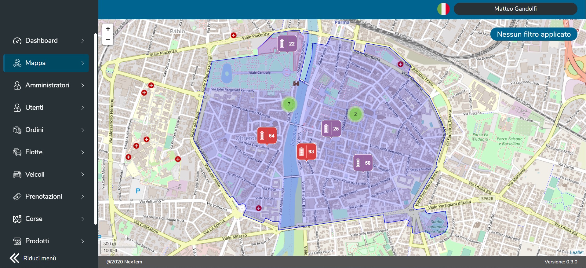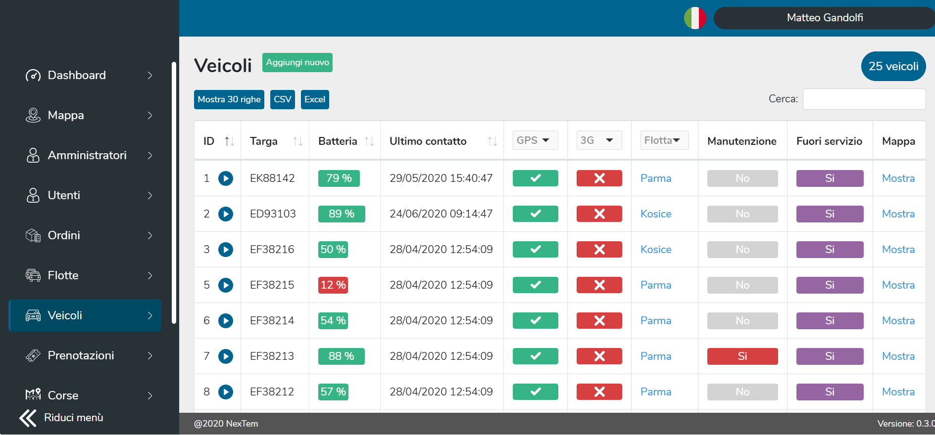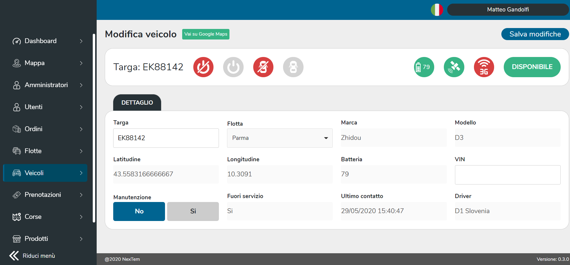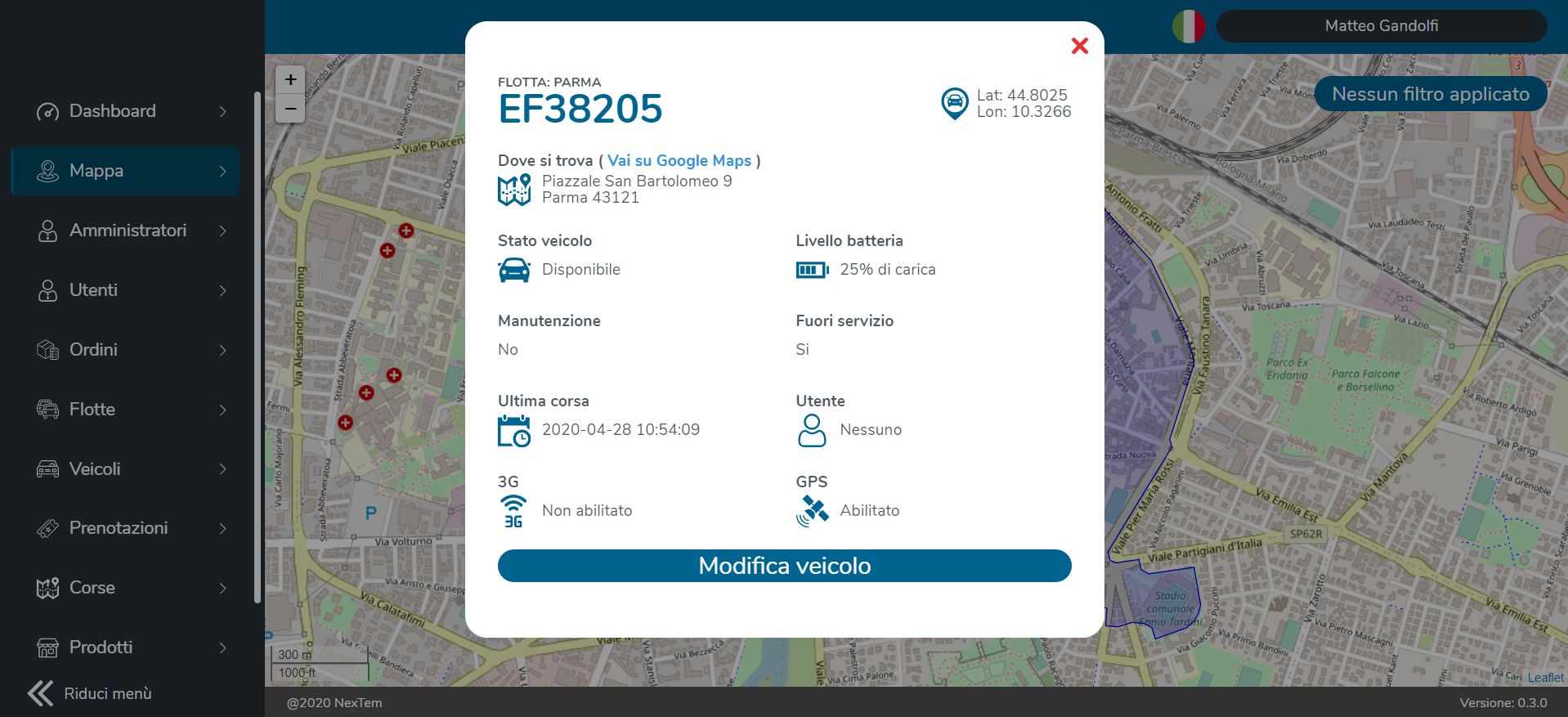 Di ogni veicolo è possibile sapere tutti i dati in tempo reale: l’interfaccia di amministrazione è accessibile anche tramite gli operatori su strada (logisti) che devono manutenere la flotta.