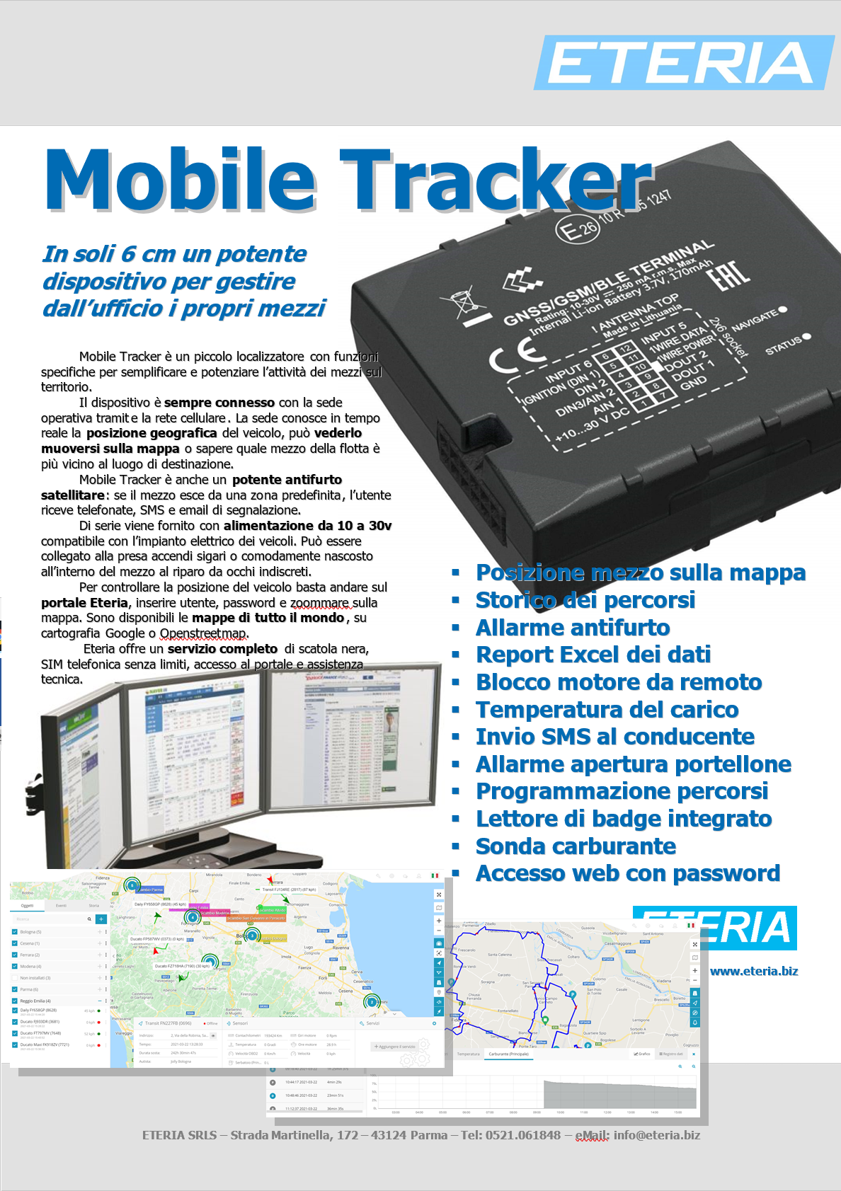Stai cercando un metodo affidabile per proteggere i tuoi veicoli e garantirti la tranquillità? I localizzatori GPS Eteria sono la soluzione ideale. Con un assortimento di opzioni tra cui scegliere, come tracker GPS, antifurto auto e mini localizzatori GPS, puoi avere il controllo totale sulla flotta aziendale o sui tuoi veicoli privati.